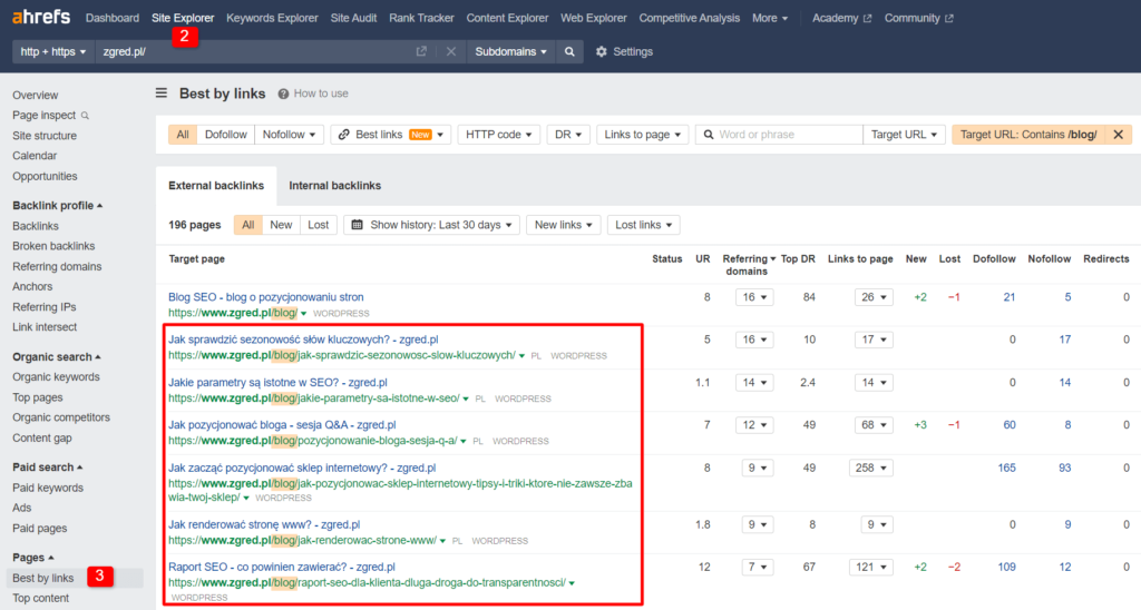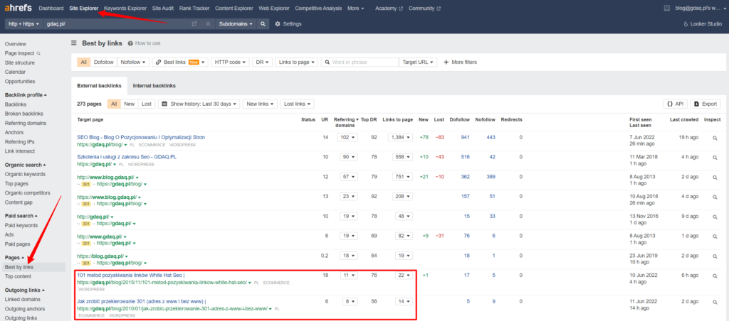 - W Site Explorer sprawdź, z jakich konkretnie podstron danej domeny konkurencja pozyskała link i do dzieła 🙂