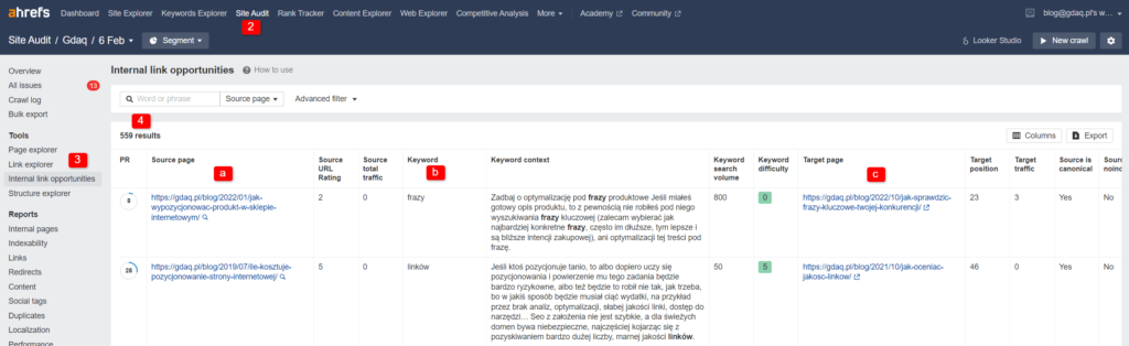 Do tej analizy przydadzą Ci się już płatne narzędzia, np. Ahrefs.