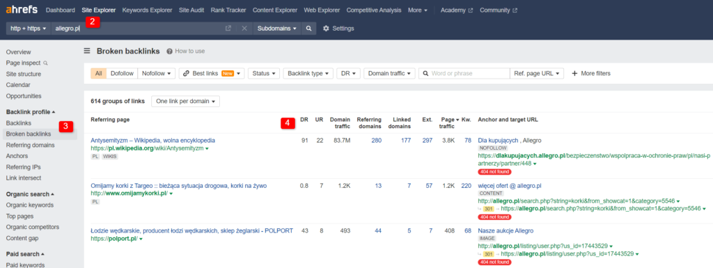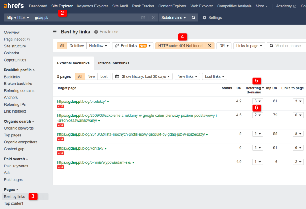- po lewej z sekcji Backlink profile wybierz: Broken backlinks,
