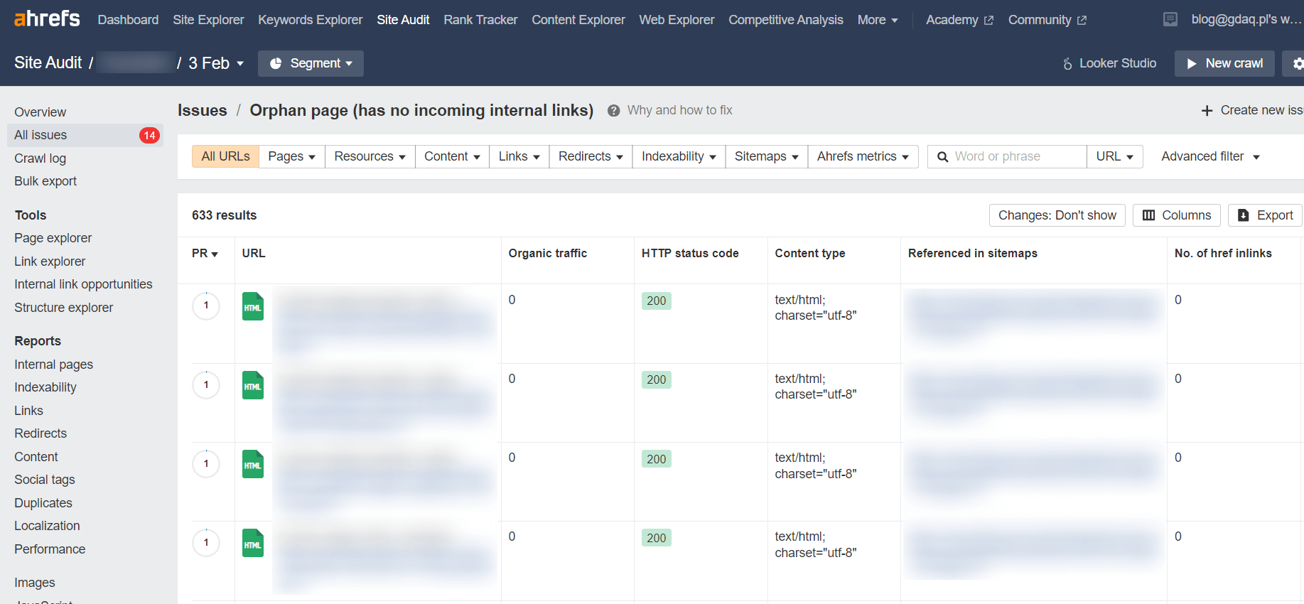 Większość narzędzi do audytów seo bez problemu będzie w stanie wskazać strony osierocone. Ja jak zwykle używam do tego Ahrefs.